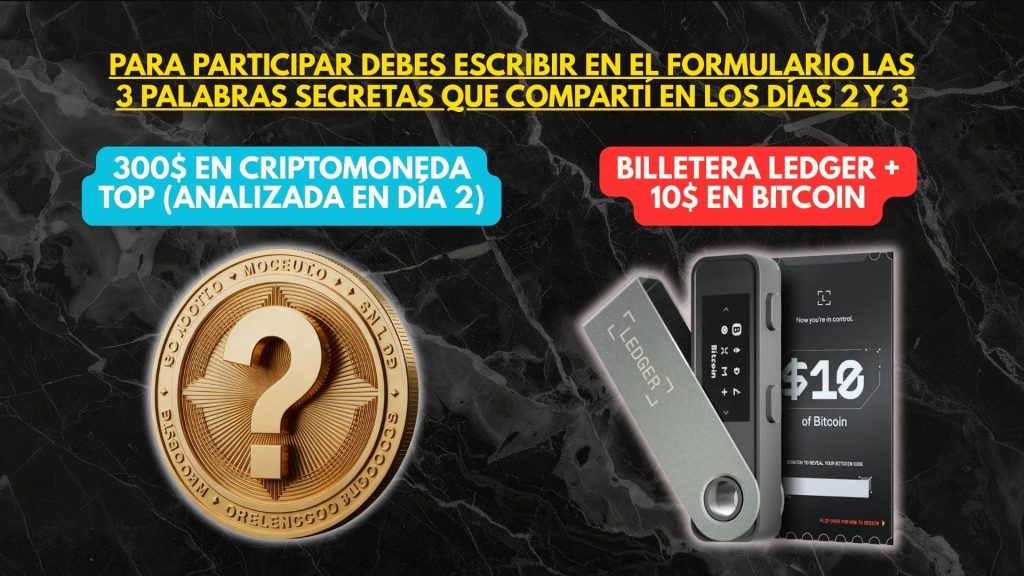 Dentro de este replay encontrarás una de las 3 palabras clave necesarias para participar en el sorteo de 300$, una Ledger y 10$ en BTC. Mira la sesión con calma, anota las palabras y luego rellena el formulario con las 3 claves para entrar en el sorteo.